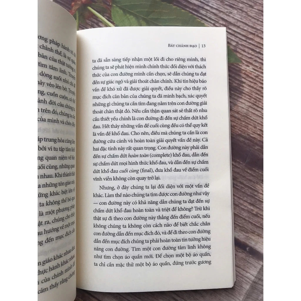 Cuốn sách này là một báu vật, dung lượng khiêm tốn nhưng chứa đựng hầu hết những lời giải thích thực tiễn và dễ hiểu về giáo lý Bát chánh đạo được đức Phật thuyết giảng trong Kinh tạng Pali, hiện nay có bản dịch bằng tiếng Anh. Không có thành kiến dễ đọc và rất quan trọng, đưa ra nhiều lời gợi ý sâu sắc và nhẹ nhàng cho người mới bắt đầu nhập Đạo cũng như người có kinh nghiệm về con đường chân chính đó.