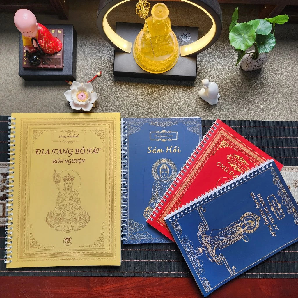 Combo 4 Cuốn Sổ Chép Kinh Địa Tạng - Chú Đại Bi - Sám Hối - Dược Sư Lưu Ly