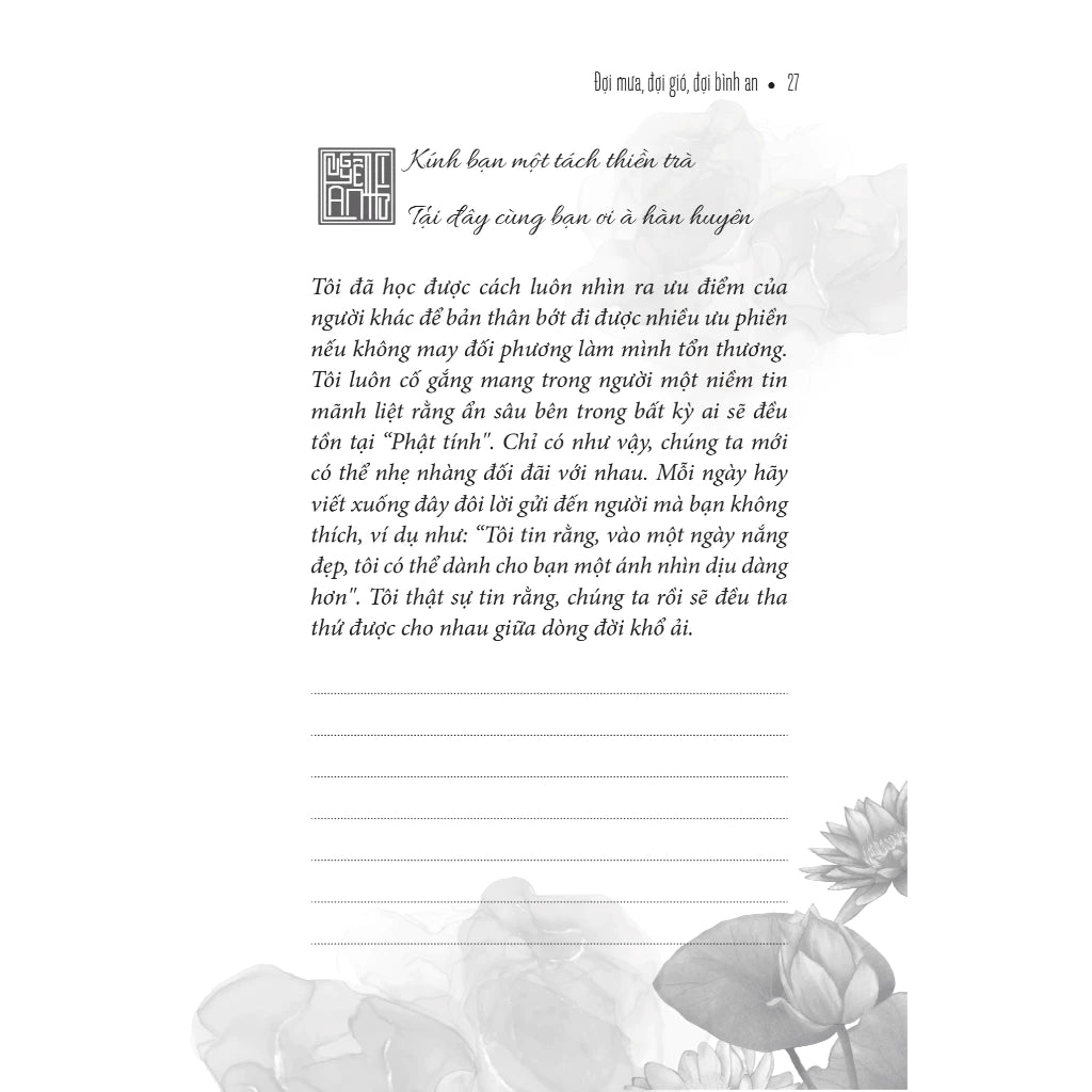Đây cũng chính là những chia sẻ thấm thía của tác giả Huệ Như Hạm Đạm trong cuốn sách đầu tay “Đợi mưa, đợi gió, đợi bình an”.