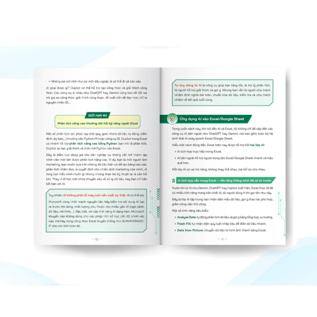 Excel AI Thực Chiến là cuốn sách hướng dẫn ứng dụng AI vào Excel và Google Sheet theo cách thực tế - dễ hiểu áp dụng ngay, giúp bạn làm việc nhanh hơn, giảm sai sót và nâng cao tư duy dữ liệu.