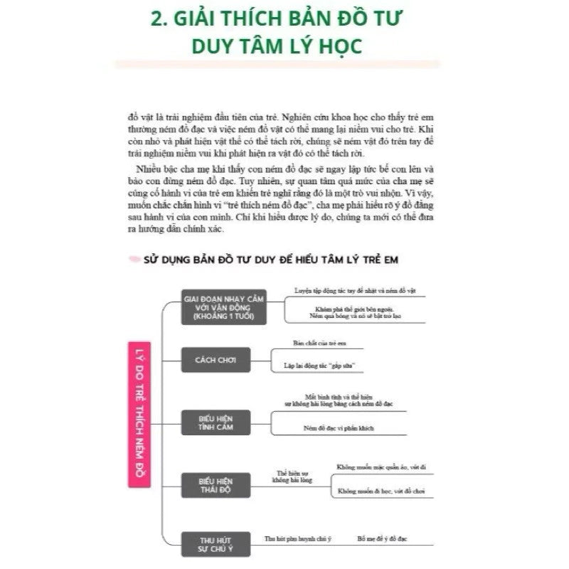 Gợi ý cho cha mẹ cuốn sách "Giải mã thể trạng hành vi trẻ con từ 2 đến 8 tuổi", với 42 hành vi hay dính của con được phân tích dưới dạng sơ đồ TƯ DUY, sẽ giúp cha mẹ: