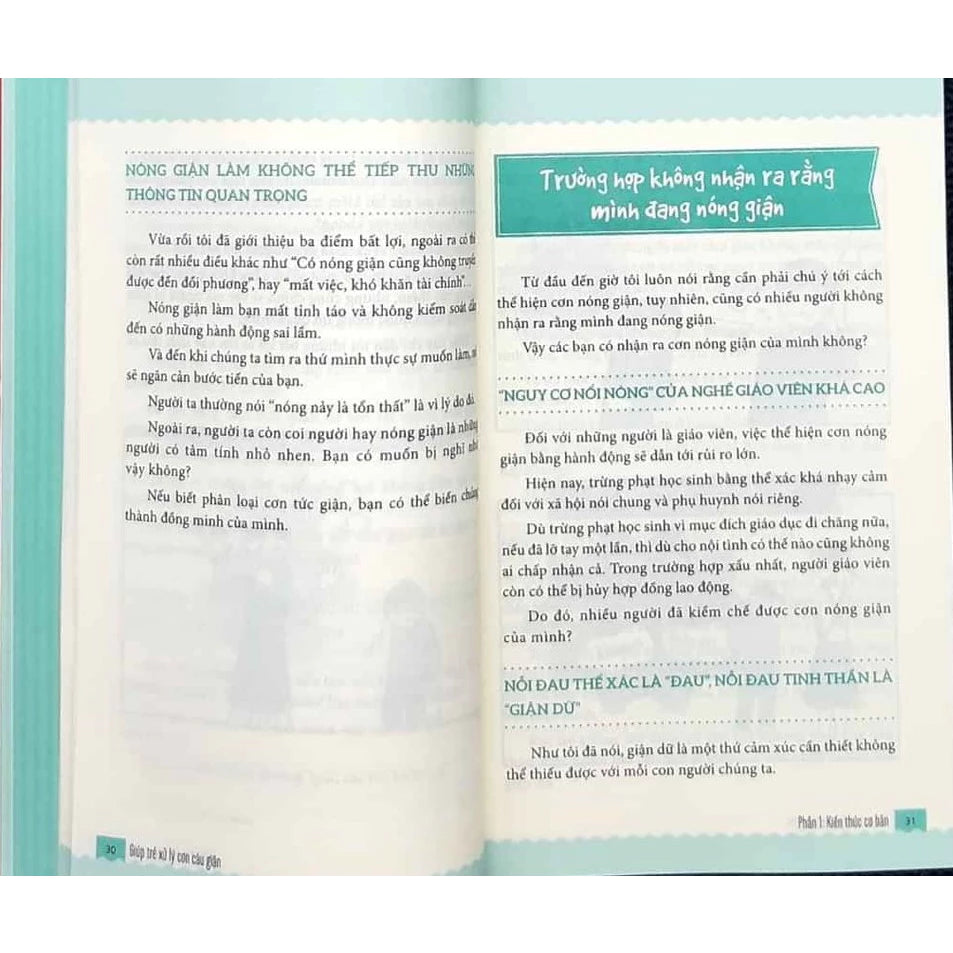 Trong cuốn sách “Giúp trẻ xử lý cơn cáu giận – 57 bài luyện tập để điều khiển cơn giận của trẻ”, tác giả sẽ giải thích về cấu trúc của “cơn giận” và “cách quản lý cơn nóng giận” nhằm giúp tự điều khiển cơn giận của bản thân. Hơn nữa, tác giả cũng đưa ra rất nhiều tình huống có thể áp dụng vào đời sống thường nhật, phát huy biện pháp quản lý cơn giận này khi cha mẹ và con cái cùng chung sống dưới một mái nhà. Nhờ đó cha mẹ có thể xây dựng mối quan hệ tin cậy với con một cách tự nhiên nhất.