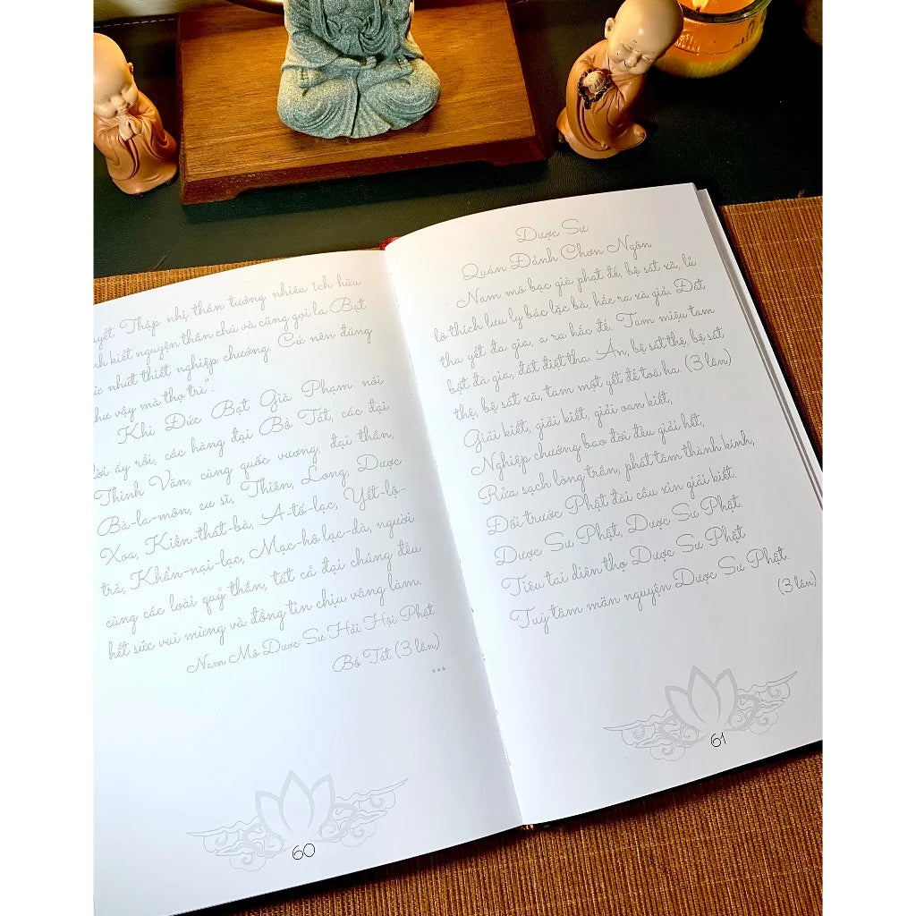 - Vở chép Kinh Dược Sư nhỏ gọn, đặc biệt có thể mang theo đến chỗ làm, đi du lịch, rất thuận tiện để chép ở mọi nơi, mọi lúc, giờ nghỉ trưa, hay giờ giải lao v.v......