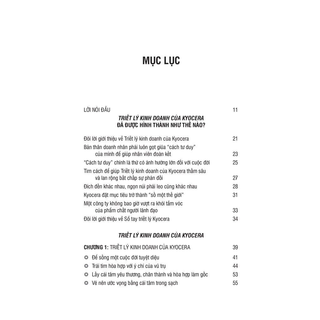 Điều gì tạo nên thành công cho một doanh nghiệp: nguồn vốn, nhân tài hay công nghệ? Theo doanh nhân huyền thoại Inamori Kazuo, câu trả lời không phải ba yếu tố kể trên mà là triết lý của người chủ doanh nghiệp. Thực tế đã minh chứng cho tư tưởng của ông. Bằng việc tạo nên một triết lý kinh doanh cho chính bản thân và công ty, Inamori Kazuo đã đưa Kyocera từ một doanh nghiệp nhỏ trở thành một tập đoàn công nghệ cao đa quốc gia hùng mạnh. Ông đã tóm tắt lại những tư tưởng của mình trong cuốn Triết lý kinh doanh của Kyocera.